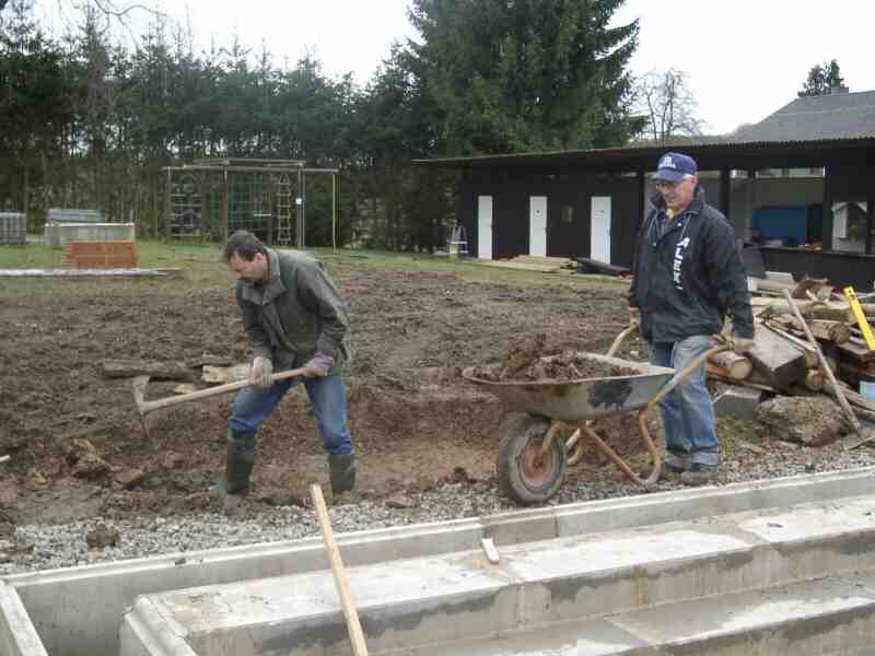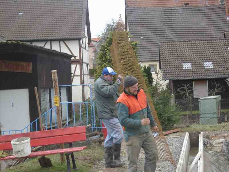 Harald und Werner schleppen die schweren Baumatten heran