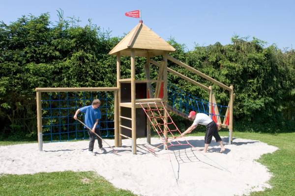 Das 2006 neu aufgestellte Klettergerüst für die Kleinen bringt Spass auch außerhalb des Wassers