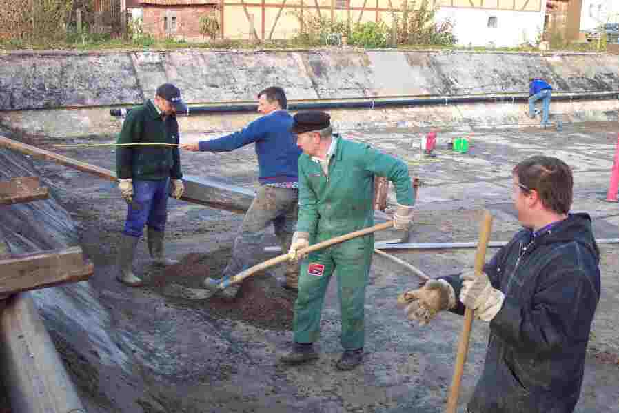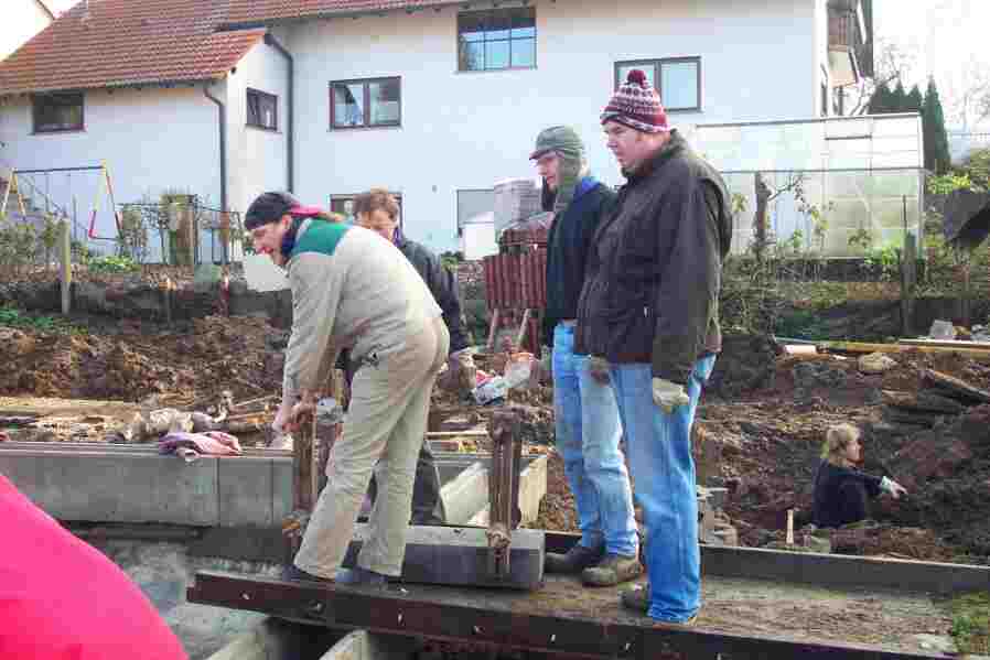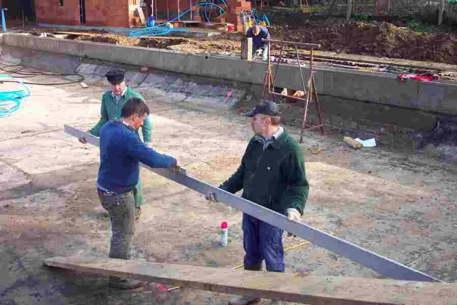 Die große Einstiegstreppe wird eingemessen...
